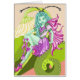 Blommar den felika benägenheten för härliga blått mot den vibrerande gröna växtuppsättningen mot en persikabakgrunds- och blekfärgad. Denna fängslande varelse är iklädd pinks och lila och henne mörk - flår lockiga hårkontraster för blått mot henne blått. En ursnygg fantasivarelse som precis omkring varar slö i grannskapen.