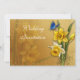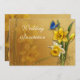En nätt påskliljadesign med en blåttfjäril som stiger av på påskliljahuvudet och den subtila påskliljan, specificerar i bakgrunden. Ditt bröllop specificerar kan lätt tillfogas, och dessa visas med en subtil diffus påskliljaplats. Perfekt för vår bröllop, welsh anslutningar och entusiaster av dessa härliga blommor.