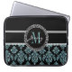 Flickaktigt verkställer svarten och blått utskrivavet glitter det damastast mönster för vintage med den känd monogramen som är initial och. Personifiera med ditt namn och din monogram genom att använda mallen. Damastast Gallery© annan färgar, och stilar som är tillgänglig i vårt, shoppar på www.zazzle.com/DamaskGallery*