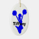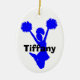 Slösa silhouetten av en banhoppninghejaklacksledare mot en oval keramisk prydnad för vit. Svarten sätta en klocka på beställnings- text läser hejaklacksledare, på baksidaen och namn, på bekläda. Personifiera alla text för din speciella andeledare. Gör en underbar gåvaidé.