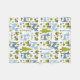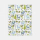 En ullfilt som presenterar ett mönster med illustrationer av blåtthjort, spårar, träd, löv och ekollonar. Personifiera namn.