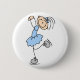 En liten flickakonståkare i en blått klär skridskor och dansar henne in i din hjärta på denna förtjusande anpassade knäppas långt.