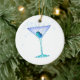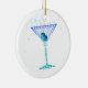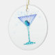 En läcker blått martini som är färdig med 2 blåttkörsbär på en hängande prydnad