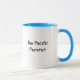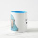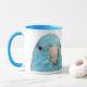Foto av min male Stillahavs- parrotlet för blått på en mugg. Skriftligt på motsatssidan är artnamn. Gulligt!