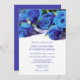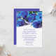 Bröllopinbjudan i blått och vit med ro och eleganttypsnitt.