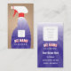 En visitkort för ett lokalvårdföretag som presenterar en illustration av blått och en röd sprejflaska. Upload din egna logotyp och skräddarsy texten. Baksida presenterar samma blått och röd färgintrig med utrymme för logotyp, namn och info.