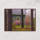 Detta älskvärda konstnärhandelkort presenterar charma lite huset som kura ihop sig i den piney skogen. Det är springtime. Rosa rhododendronbuskar är blommas, och gräset är grönt. Luften fylls med fågelsång.