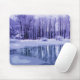 Denna konstmousepad framlägger en säsongsbetonad vinter landskap skuggar in av blått, violet, grått, vit och lilor. Träden är kala. Is täcker delen av vatten men älskvärda reflexioner av träd, moln och himmelsken igenom för att bilda ett abstrakt mönster. Snö omger damm.