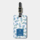 Gullig blom- bagagemärkre med ett mönster av glömma-mig-nots i blått, vit och grönt. Tillfoga ditt namn och märka med sina initialer på en blåttetikett. Baksidaen presenterar en blomma fattar på en mörk - slösa bakgrund, och du kan personifiera med din namn och adress.