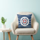 Blåttvit görar randig den nautiska kompasset kudde
