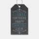 Populär chic, vintage-chalkboard-utseende, Födelsedagsfestens favorittagg i blått. (anpassa färg och klicka på "Anpassa" ). Kalkboard ser bakgrunden ut med vintage blue typography typsnitt. Vintagen är snabbt blått, personlig med födelsedagskalender namn, tack och party. Lägg till matchande produkter - Besök min butik "The Hungarican Princess" på www.zazzle.com/hungaricanprincess*. Titta i min "Party" avdelningskategori eller "Chalkboard Collection". Grattis på födelsedagen!