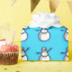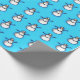 Blaues-, Weihnachtsgeschenkpapier mit süßen Schneemännern.