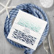 Biet i denna elegant bröllop-svit har en klassisk nautisk stil med ett rent, minimalistiskt utseende. Stilistiskt vågar i skuggor från akvatblått till marinblått och en sjöillustration ger unika accenter. På denna samordnande pappra napkin skapar en vit banderoll med marinblått över abstrakt vinkarare ett enkelt men öga-fångstmärke för namn och bröllop. Perfekt för klubb, båt, vid sidan av eller sommardestination. Sök i ID836 för att se denna fullständiga svit och andra med alternativa marina accenter från inslag.