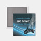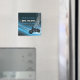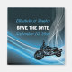 Blåvägsmagnet bröllop spara datum, med biker, med en motorcykel på en abstrakt med övertoningsblått, vitt, svart bakgrund och vitt nät. Lite inslag från Clipartandfonts.com.