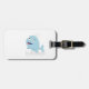 En blå val som hoppar ut från vatten. Tecknade figurer. Anpassningsbarnas bagagemärkning för resväskor. Gift-idé för barn.