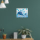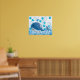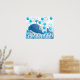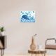 Söt och glad blåval omgiven av tvålbubblor för att lysa upp barnkammaren eller kanske där barnet badar.