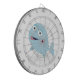 En blå val som hoppar ut från vatten. Tecknade figurer.
