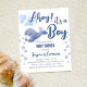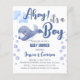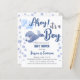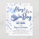 Blåval budgetdusch Ahoy, det är en inbjudan till pojken. Baby valar med stjärnballonger och årstidsballonger och vatten bubblor på sidorna.