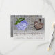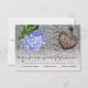 Blåväte och metall som är betrodda på svarskort för rustik bröllop OSA med en brun, betrodd metallspik på träplattan för vävt grått-ladun och en bue-vattenblomma. Den här blommigt bröllop-mallen är helt utformad för anpassade och perfekt för en vår eller sommar-land-bröllop.