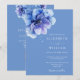 Den här inbjudan till bröllopsbröllop med elegant, vattenfärgsblått botaniskt blommigt, kan vara personlig med din information i chic typografi med din bröllop webbplats QR-kod på motsatt sida. Designad av Thisisnotme©