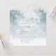 Den här inbjudan till bröllopsbröllop har en mjuk bokeh blå himmel som belyser ett snöfall på en säng på vitt. Den här designen ingår i den moderna samlingen för blå vinter-Snö-Bröllop-svit.