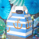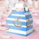 Blåvit bakgrund för ankarpunkten guld presentaskar