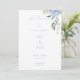 Kort för bröllopsprogram för chic och elegant, med välkomstmeddelande, programinformation för fullt och anpassningsbarna "tack". Utformningen har en uppsättning dammiga blå teckensnitt med chic mot en vit bakgrund. Snyggt, romantik, elegant med ungdomliga undertoner, den här designen tillför just det speciella något till din stora dag. Anpassa den här unika designen så att den blir din.