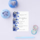 Observera att inbjudan är papper och mycket tunn. Kuvert ingår inte. Om du vill ha mer omfattande inbjudningar (samma design) kan du besöka vår butik. En vit bakgrund, dekorerad med blå och vita blommor. Anpassa och lägg till namn och information. Bakåt: blå bakgrund.