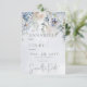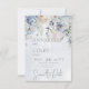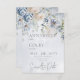 Den här designen har en mjuk blå vattenfärg som tvättar bakgrund med en övre kaskad av blek periwinkle Blue och vita blommor. Den här designen är en del av Blue & White Blommigt Modern Bröllop Suite Collection skapat av enbart Farmhouse Press.