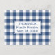 Inbjudan släktingar till en familjeåterförening med vykort med en klassisk blå och vit buffelkontroll gjord med upp till 3 linjer text i en vit rektangel i mitten på framsidan. Datum-, tid-, plats- och kontaktinformation finns på baksidan. Perfekt för en årlig barbecue, picnic eller en ny tradition. Anpassa den med ditt namn och party-detaljer i sidpanelen. Klicka på länken Rocklawn Arts Samling för att samordna party. Copyright ©Claire E. Skinner. Alla höger reserverade.