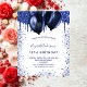 Observera att inbjudan är papper och mycket tunn. Kuvert ingår inte. Om du vill ha mer omfattande inbjudningar (samma design) kan du besöka vår butik. En giftig och feminin 18:e (eller någon ålder) födelsedagsfest inbjudan. På framsidan: En vit bakgrund. Dekoreras med marinblå faux glitter-droppar, färgdroppstift och ballonger. Anpassa och lägg till information om namn och party. Namn är skrivet med ett handskript i stil.