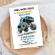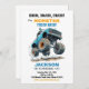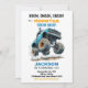 Blåvit inbjudan till Monster Lastbil på födelsedag