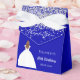 En blå royal, dekorerad med konetti och en flicka i en boll-klänning, klänning. Anpassa och lägg till namn och datum.