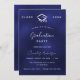 En modern inbjudan till studentfest av elegant. En blå bakgrund, vit text. Den blå färg är ojämn. Anpassa och lägg till namn, år och detaljer.