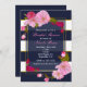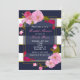 Blåvit och Guld Modern Blommigt Chic Party-inbjudan. Matchande objekt är tillgängliga.