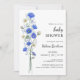 Blåvit och vit Elegant Wildblomma Baby Shower Inbjudningar