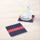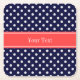 Blåvit Polka dots Coral Namn Monogram Underlägg Papper Kvadrat