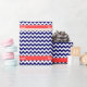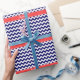 Blåvit rödvit Chevron Coral Red Namn Monogram Presentpapper