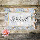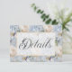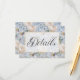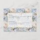 Den här bröllop-kortdesignen har ett vackert, mjukt blommönster i periwinkle-blått och vitt rustiskt på en dammig baksida i periwinkle-blått åldras. Texten visas på ett mjukt, vitt, genomskinligt textområde med faux guld glitter ram. blommönstret fortsätter bakåt. Kortet är en del av den blå och vita Rustic Blommigt Guld Ram bröllop-svit som skapats av enbart Farmhouse Press.