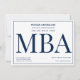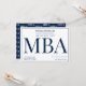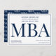 En MBA-studentfest inbjuds i blått och vitt. Denna inbjudan har också en mönster i ord MBA på baksidan.