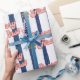 Blåvit vit Rand-jordgubbsdag Presentpapper