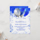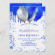 En vit bakgrund. Dekorerad med royal blå och faux silver-ballonger. Anpassa och lägg till information om namn och party. Namn är skrivet med ett handskript i stil.