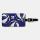 Den här helt enkelt designade märkrn för färg bagageväska för flickor eller pojkar har tre slumpmässigt arrangerade basketbollar med omväxlande blåvita och vita paneler - personliggör med spelare namn och monogram på framsidan, adress på baksidan - av katz_d_zynes