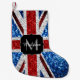 Blåvita flagga i Förenade kungariket glitter Monog Liten Julstrumpa