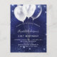 Blåvita glitter-ballonger i födelsedagsfest inbjudan vykort