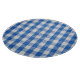 Vinklade och blå matkläder Gingham tabellecloth mönster satte upp platsen för en klassisk måltid. Klassiskt kontrollerade matkläder anger tonen. Bistro ambiance in simple elegance. gingham, trasa, bord, blue, mönster, tabellecloth, checked, struktur, bistro, square, schaced, land, plaid, canvas,,, inbjudan, bakgrund, abstrakt, decor, food, white
