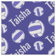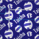 Nätboll för personliger med blå formgivning i rand mönster sport. Vita och blå netbollar och mörk blått färg som kan bytas ut vid behov. Perfekt för netbollspelare, bussar och fläkt. Anpassa efter eget val av namn, läser för närvarande Taisha. Grafikkonst och designad av Sarah Trett för www.mylittleeden.com