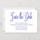 Spara datumet skrivs i kalligrafi utan tidslinje. Denna moderna och minimalistiska marinblått och vitt räddar datumet på vykortet är chic och sofistikerat. Mycket enkelt att anpassa.