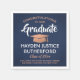 Lägg till en personlig för elegant i dekorationer för högskoleutbildning eller studentfest med pappra blöjor för anpassningsbar, marinblått, vitt och koppar. All text är enkel att anpassa. Utformningen har en mörk blått figurbakgrund, ett faux foil mortar board-lock, snyggt modern typografi och handskrivet stil-skript kalligrafi. Observera att koppar är tryckt teracotta färg, inte metallfolie. Grattisar till student!