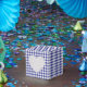 Blue-White Gingham-PARTY FAVOR BAGS, stil med fyrkantigt hjärta - De små, schaktade fyrkanterna av gingham i mönster med överkant. Gingham mönster finns i olika färg. Det finns samordning av försörjningen med Zazzle party. Välj valfri stil i Zazzle Party Favor Box.
